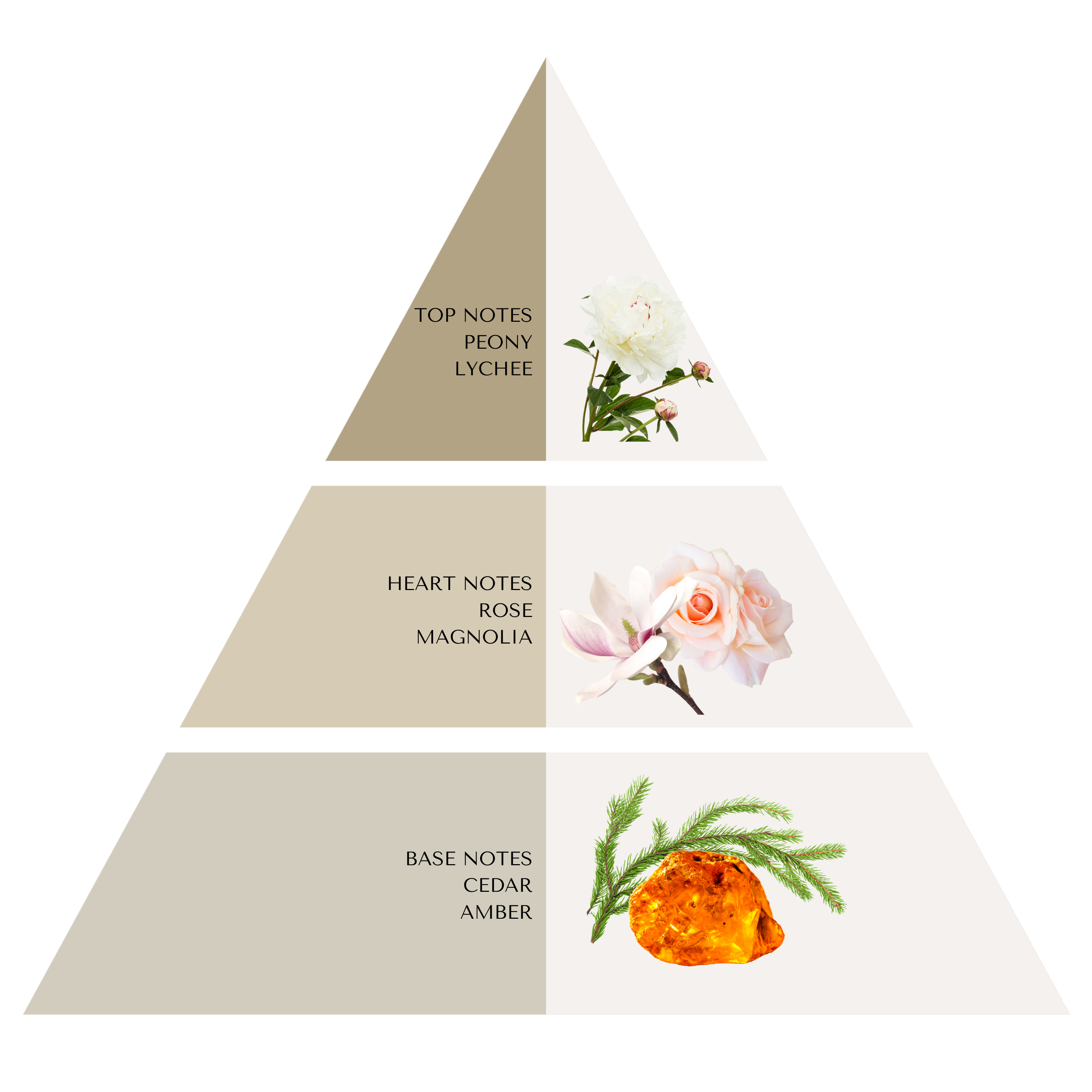 The elegant blend of floral and fruity tones of lychees, peony, magnolia and roses creates a smooth and comforting scent